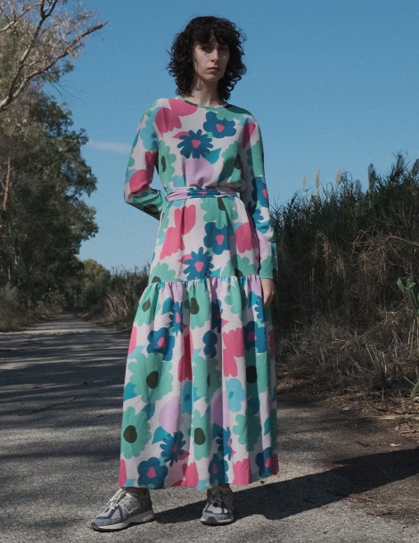 Embrace effortless elegance with this flowy, oversized long dress featuring a soft floral mint print and a matching belt. Light, breezy, and feminine — perfect for relaxed days or chic summer outings.